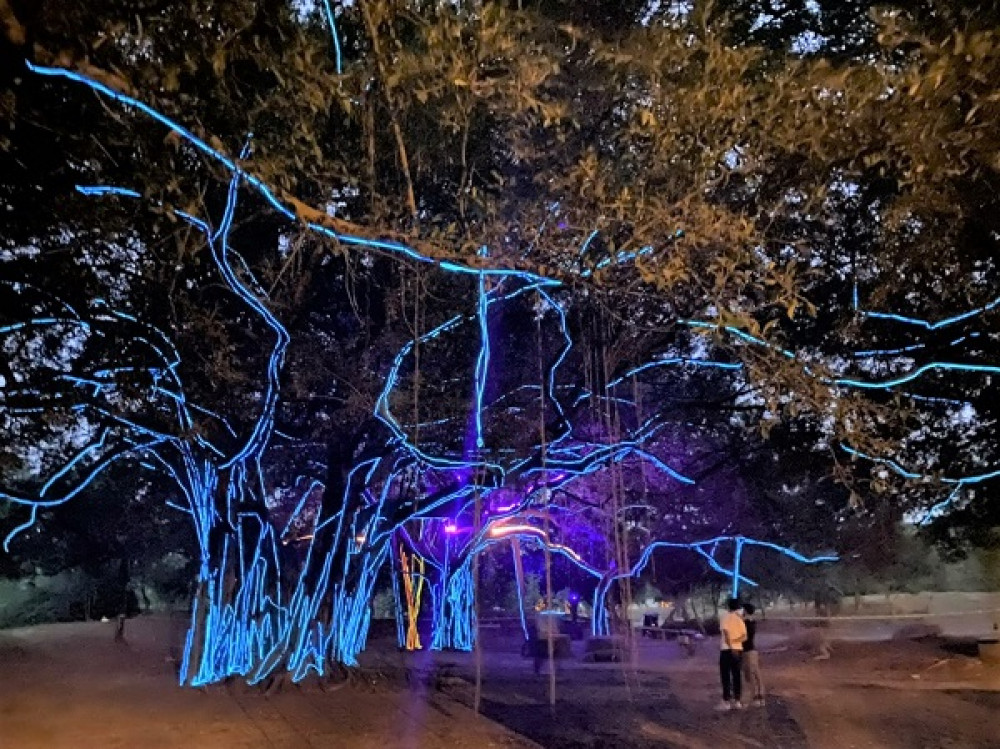 史哲副市長說,衛武營都會公園最迷人之處,有高聳入天的大榕樹,而且是成群圍抱的大榕樹群,在百年樹群中,凸顯這片生命,於焉冷光線條成為生命線,像人一樣有血管,彰顯樹木的生命價值。同時,藉由冷光線條的鋪設,在這個迷人的密集榕樹群中,打造出如同阿凡達世界的生命線,展現這公園裡旺盛的生命。