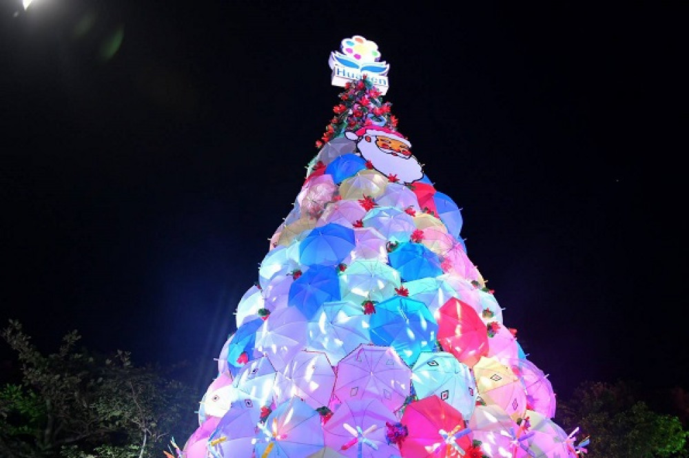 環保耶誕樹以「節慶的歡愉」為主題,將廢棄的雨傘、寶特瓶、輪胎等,堆疊出高達12公尺的環保耶誕樹和裝置藝術。耶誕樹底層由具有客家民族、原著民族、閩南語花蓮各族群元素的彩繪傘構成,樹身由各式雨洋傘與輪胎拼接,以彩繪的寶特瓶花朵裝飾,宛如童話故事般的絕美景色。