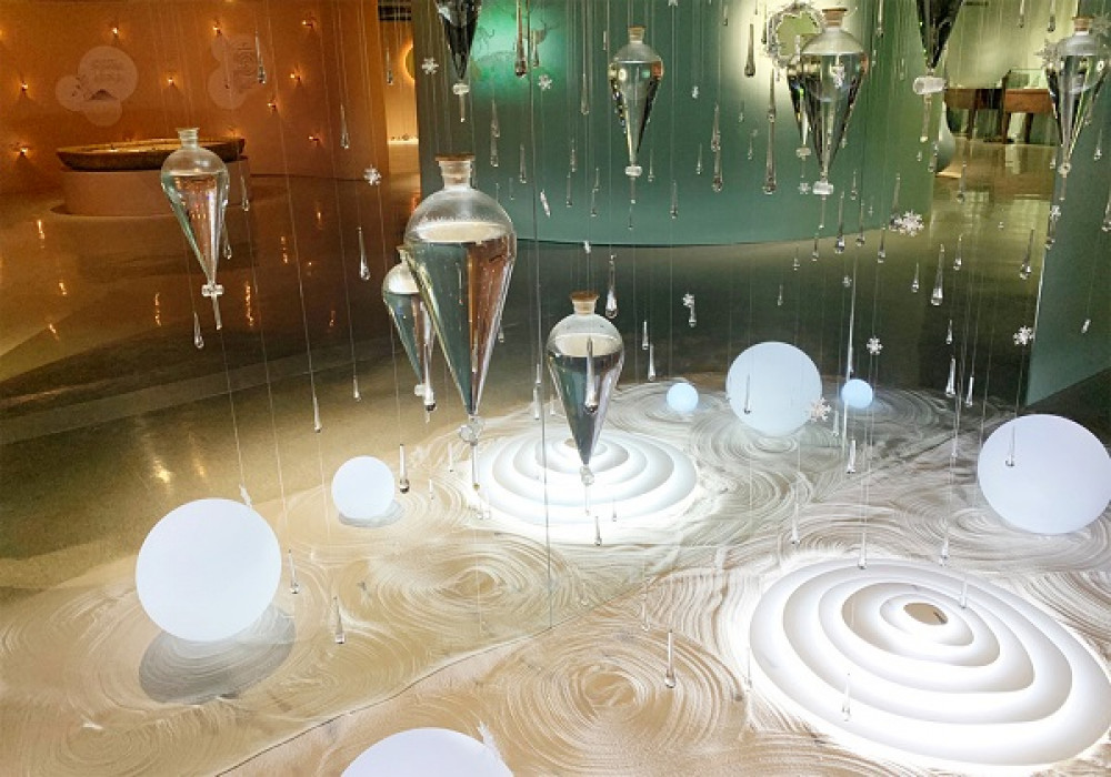 為帶給大眾深刻的觸動與啟發,館方結合數位科技,精心打造出神祕感十足的沉浸式體驗展場。不但要用手轉動地球造型的特殊旋轉門才能入場,一進展場彷彿走入充滿靈性的超現實幻境,牆上光影舞動的沙畫劇場上演茶的遠古神話,旁邊是一按就能聽耆老口述傳說的神奇之葉;用真實獸骨與瀕危動物影像建構出的末日之殤情境展區,極度震撼人心;各式化殘為美的珍稀骨董金繕、鋦瓷器物,讓人驚艷不已。還有能以感謝心意修復地球傷痕的互動體驗遊戲,盪漾著溫柔的療癒感;展場中播放孩子們童言童語表達感恩的影片,讓人不禁嘴角上揚,心中暖意滿盈;運用漣漪意象打造出鏡花水月幻景的絕美展場,令人驚呼讚嘆。