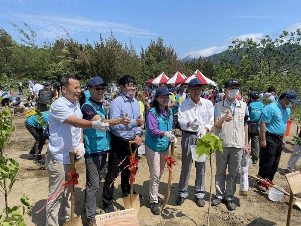 由屏東縣政府、行政院農業委員會林務局屏東林區管理處與行政院南部聯合服務中心合辦的「森活的碳循-慢活屏東森呼吸」植樹活動,27日(日)上午在車城海口港附近舉行,吸引不少民眾共襄盛舉,呼籲大家一起投入環境綠美化,共同為地球減碳盡一份心力。