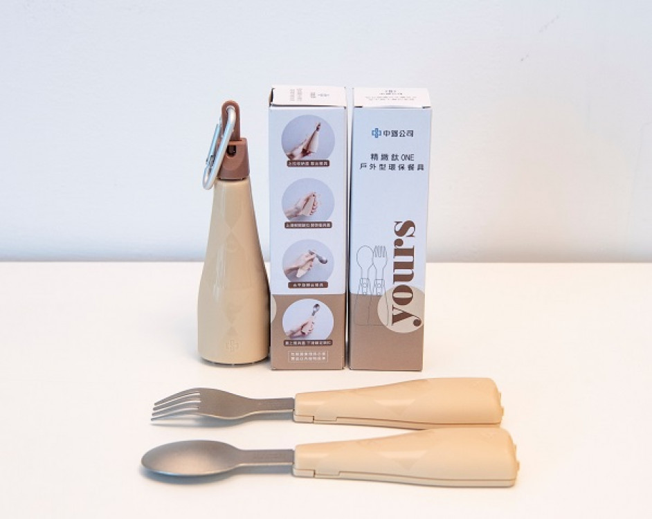 中鋼今年特別訂製外出旅遊必備兼可宜家使用的個人專屬抗菌餐具「精緻鈦ONE戶外型環保餐具」,作為股東會紀念品。紀念品包含一組湯匙叉子,其中金屬件部分採用純鈦製作,握把塑料添加日本抗菌材料,產品具有純鈦材質輕、堅固耐用且材料抗菌等特性,推出防疫期間外出用餐最佳良伴,期望藉由減少一次性餐具的使用,為地球環境盡一份心力。