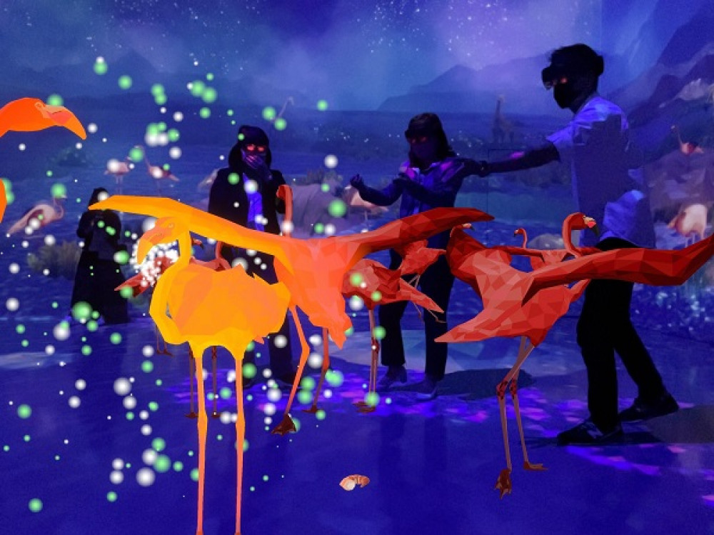 MR沉浸式劇院「夢境現實」目前展出作品包含靈感來自中國神話經典《山海經》的「帝江化生」,搭配MR裝置擊鼓與兩隻仙鶴幻化的精怪互動;「鶴之舞」特聘前迪士尼幻想工程師王舒音(Dolce Wang)打造配樂與整體互動設計,透過MR眼鏡參與小鶴從蛋中孵化到長成紅鶴的過程,深獲親子好評。