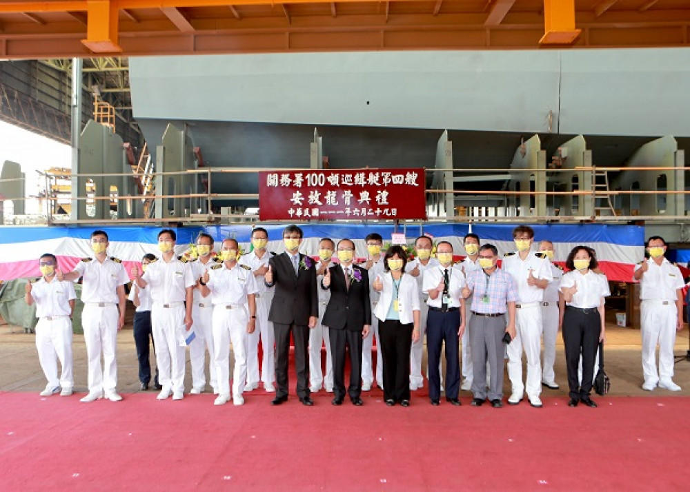 台船為財政部關務署建造4艘100噸級巡緝艇,第四艘(台船編號HNO.1180)29日(三)上午由台船副總經理周志明與關務署高雄關關務長陳木榮在台船高雄廠共同主持安龍典禮。