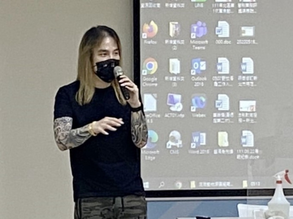 留著金色長髮,長相酷似搖滾歌手伍佰的張敬偉,看似江湖味十足的外表下,其實是個熱愛生命、投入動物救援活動十餘年熱血男子。「動物救援界伍佰老師」在現場分享了許多TNVR及動物救援實務經驗,他認為教育是解決問題根本之道,TNVR是個階段性任務,也是現階段必要之舉,任何生命都需要被尊重,減少流浪動物數量也是尊重生命的方式。