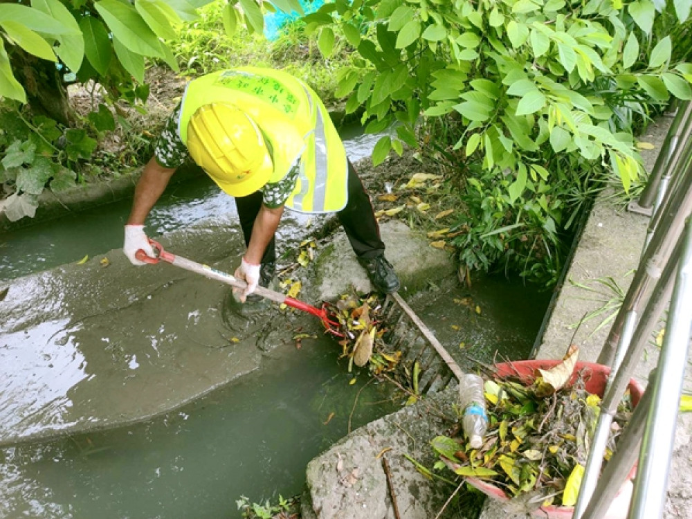 不管雨勢多猛烈或豔陽多炙熱,常常看到路邊清潔隊員在又悶又熱又濕的環境執行清溝勤務,堅守崗位、即時清淤。環保局呼籲市民朋友不要將油水、砂土及菸蒂等垃圾丟入水溝,並檢視住家周遭排水側溝,隨手將水溝蓋上的枯枝、落葉或花盆等易阻礙排水雜物移除,共同重視環保、維護排水順暢,提升環境品質。