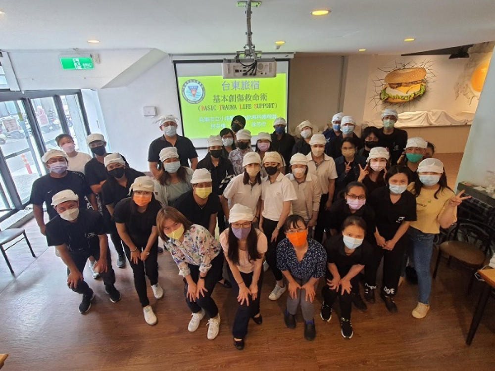 參與學員第一次進行CPR壓胸學習時,很擔心力道掌握不佳,在護理師親自示範與指導下,皆確實學會要領,即便都不願意遇到需要進行急救的狀況,但這絕對是必備技能,讓旅客在住宿時更有保障。