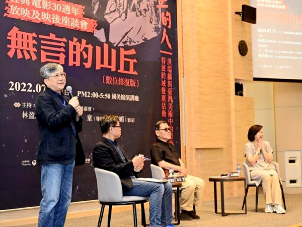 國立臺灣美術館2022推出重建臺灣藝術史大展「做工的人:洪瑞麟與臺灣美術中的勞動身影」正熱烈展出中。呼應本次特展展出之「礦工」、「勞動身影」等重點內涵,及2022年適逢以礦工與村民各勞動樣貌生活為背景之臺灣經典電影《無言的山丘》上映30週年,國美館特於展覽期間規劃跨域推廣活動,於今日辦理經典電影放映及映後座談,為觀眾播映《無言的山丘》數位修復版,並邀請本片導演王童、女主角影后楊貴媚出席,由臺中市影視發展基金會副執行長林盈志主持,共同進行映後座談,現場民眾反應熱烈,座無虛席。