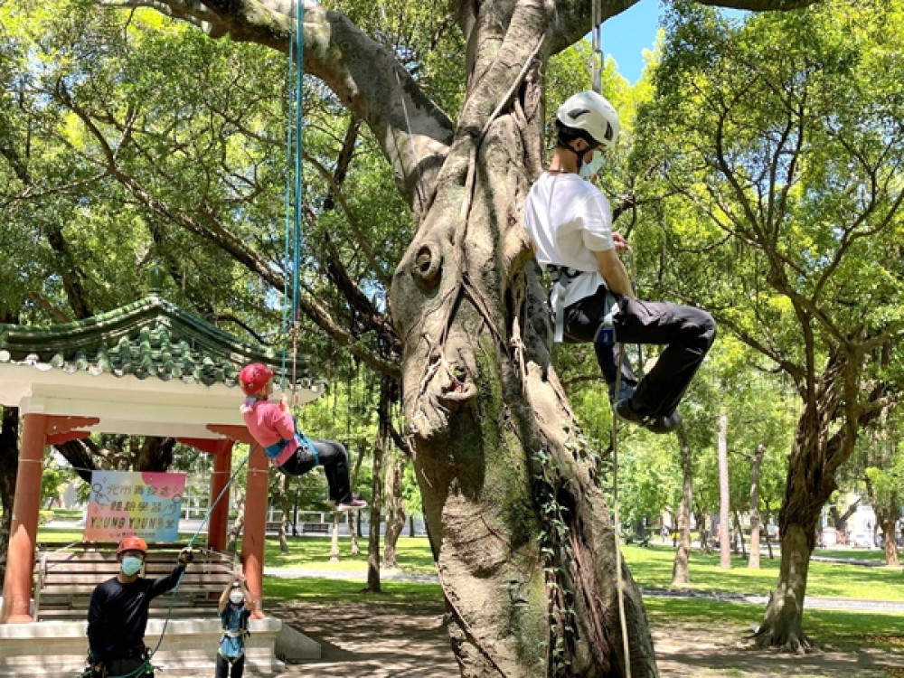 炎炎夏日,臺北市青少年發展處於青年公園舉辦「親子攀樹體驗營」,邀請爸爸媽媽和孩子一起在城市裡親近大自然、體驗如何上樹,並學習運用器材及肢體協調性,過程中促進親子間的對話與互動,在繁忙的生活裡共同刻劃美好的回憶。