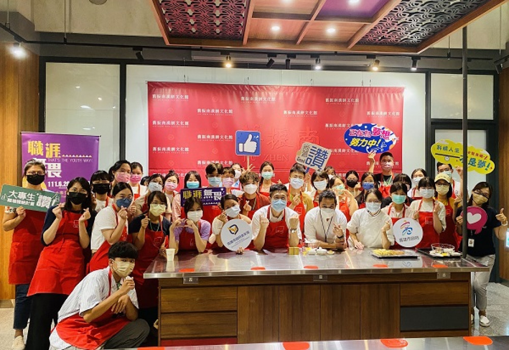 青年局透過一系列的職場體驗活動,目的在於強化青年對職場現況,以及實務的認識。為了解現在大專青年對未來職涯的想法,青年局顏己喨副局長與青年共同完成舊振南漢餅文化館之一日職場活動,實地參與製作鳳梨酥與包裝設計、推廣的整個過程,透過與青年學子實際互動,鼓勵年輕人要勇於展現自我能力,提升未來職涯競爭力。