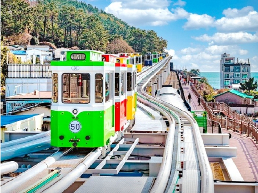 坐在海岸列車欣賞海景的最佳方法只要來到海雲臺Blueline Park就可以體驗,海岸列車一路從尾浦至松亭延伸,共計4.8km長。透過海岸列車大片的玻璃窗看出去,彷彿大海跟小島都緩慢移動著,海風與陽光的輕撫也讓全身的細胞彷彿都活了起來。