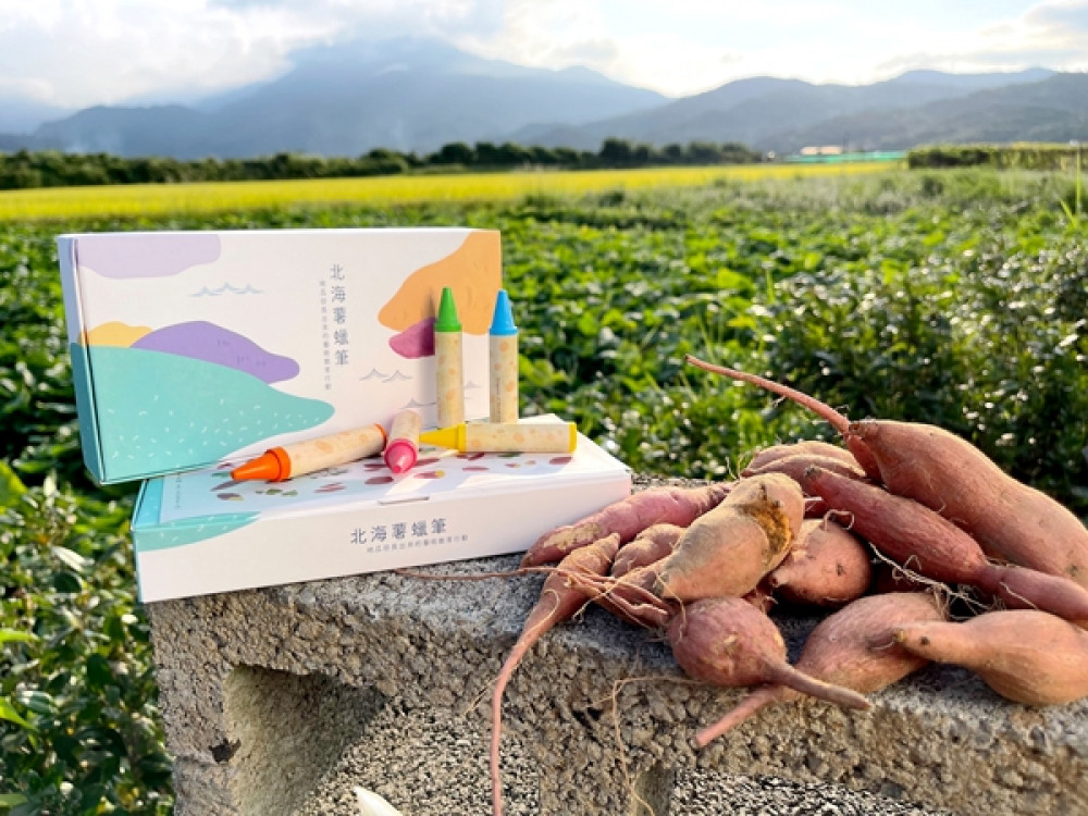 除了光影藝術裝置展演、火舞演出,今年北海潮與火還推出特色文創品「北海薯蠟筆」。由朱銘美術館從金山特產地瓜發想,把地瓜邊角料製成環境友善蠟筆;以「北海薯蠟筆」為觸媒,在地方政府及民間友善企業、團體的支持下,北海薯蠟筆將於111學年度開學後贈與北海岸地區13所偏鄉小學,學童們可以用薯蠟筆進行自由創作,畫出彩色的未來。