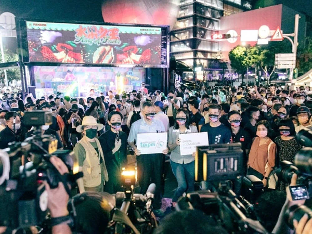 2022臺北白晝之夜跨夜藝術活動今日登場!今年白晝之夜主題為「士林大戲院」,以現場體驗、線上體驗、現場X線上體驗等3種體驗方式,4大展區、超過95組節目和藝術作品,讓民眾12小時徹夜體驗藝術不斷電的精彩魅力。市長柯文哲出席開幕活動,並前往士林文林路體驗視覺作品、藝術展演,感受臺北藝術文化的創造活力。