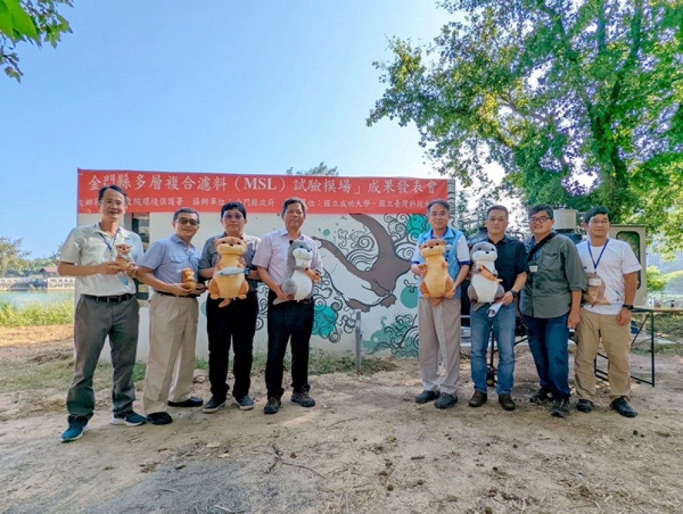 金門縣近年來旅遊快速發展,民宿及遊客大幅成長,生活污水需經妥善處理。為改善金門縣湖庫水源水質,削減營養鹽污染,提升水資源清潔效率,自111年2月起,環保署與金門縣政府、成功大學、臺灣科技大學共同合作,在金門縣小太湖旁設置「金門縣多層複合濾料試驗模場」,以學術單位所引進的先進技術,透過分層互疊排列的混合濾料包及滲透濾層碎石,每日可處理10公噸湖水,並於7月底完工,藉由模場試驗有效提升湖庫水質,懸浮固體物降低至5 mg/L以下、總磷則降低至0.05 mg/L以下,可達到水質淨化效果,除了防止污水衝擊金門寶貴的水資源外,更保護歐亞水獺生存環境,讓金門觀光旅遊能永續發展。