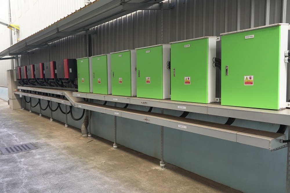 第一期用電大戶太陽能再生能源發電設備已完工,第二期用電大戶太陽能再生能源發電設備已規劃完成,預估發電量為640 KW,同樣委託台蝕在今年底投入建置。