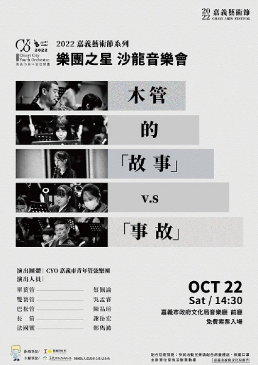 2022嘉義藝術節-「鼓舞新世代」,22、23日(六、日)在嘉義市文化局廣場,分別以「相遇舞樂」與「藝猶未盡」二大主題,邀請8表演團體、2組在地徵選表演、2場夢擊客打擊工作坊、1場長義閣掌中劇講座,以及市集、草地派對等不同精彩活動,內容包羅萬象。
