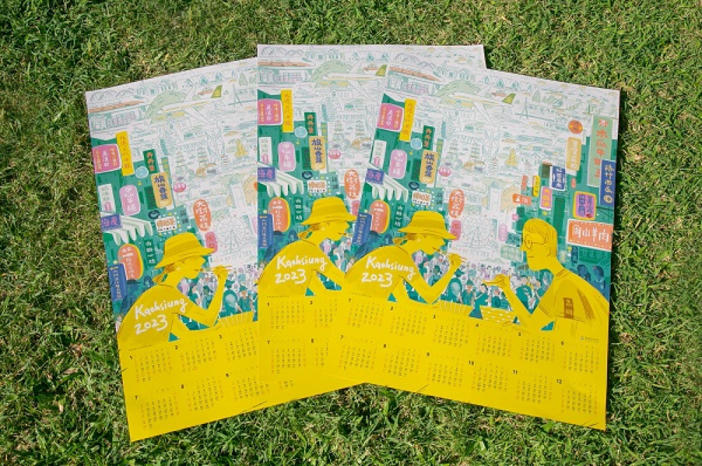 高雄市2023手繪年曆出爐,以溫暖色調呈現高雄各角落的物產和店家,象徵一年中每個日子,高雄美食如影隨形地相伴,每一刻都是好「食」刻。10月26日上午9點起,在高雄市政府四維行政中心、鳳山行政中心與38區公所同步發送,送完為止。