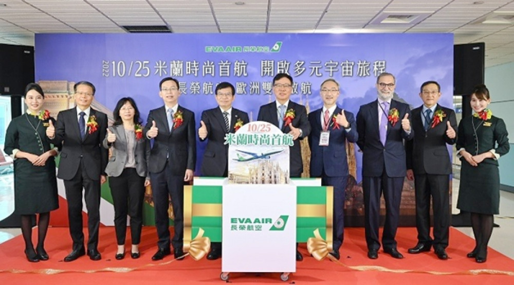 長榮航空25日首航台北-米蘭航線,首航儀式由董事長林寶水及總經理孫嘉明共同主持,並邀請交通部長王國材、外交部歐洲司司長姚金祥、義大利經濟貿易文化推廣辦事處Mr. Davide Giglio等貴賓共襄盛舉。林寶水於致詞時表示,台北-米蘭航線為本公司在解封後開闢的第一條新航線,象徵著航空市場已邁入復甦的階段,對我們來說意義重大。義大利是台灣對歐雙邊貿易第3大國,雙方互惠的快速通關政策,讓台灣民眾在義大利也能體驗快速通關的便利性,這條黃金直飛航線開通後,台義雙方的交流將更加熱絡,未來台灣旅客前往歐洲也會更便利,我們也希望義大利的旅客能多加利用長榮航空綿密的飛航網絡,前來台灣旅遊及經商,或經由台灣轉往亞洲各大城市。