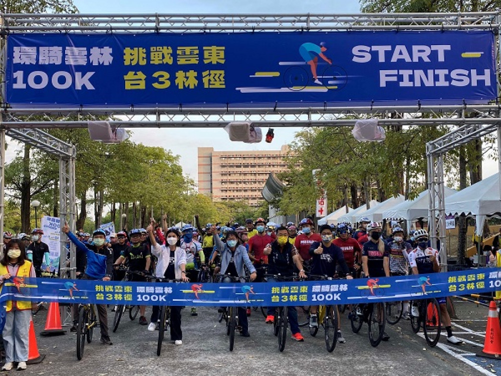 環騎雲林100K-挑戰雲東 台3林徑5日(六)登場,超過千名車友齊聚,單車全能好手-盧紹軒、土耳其單車女神-徐甘舒領騎下,自雲林科技大學體育館前廣場破風開騎。