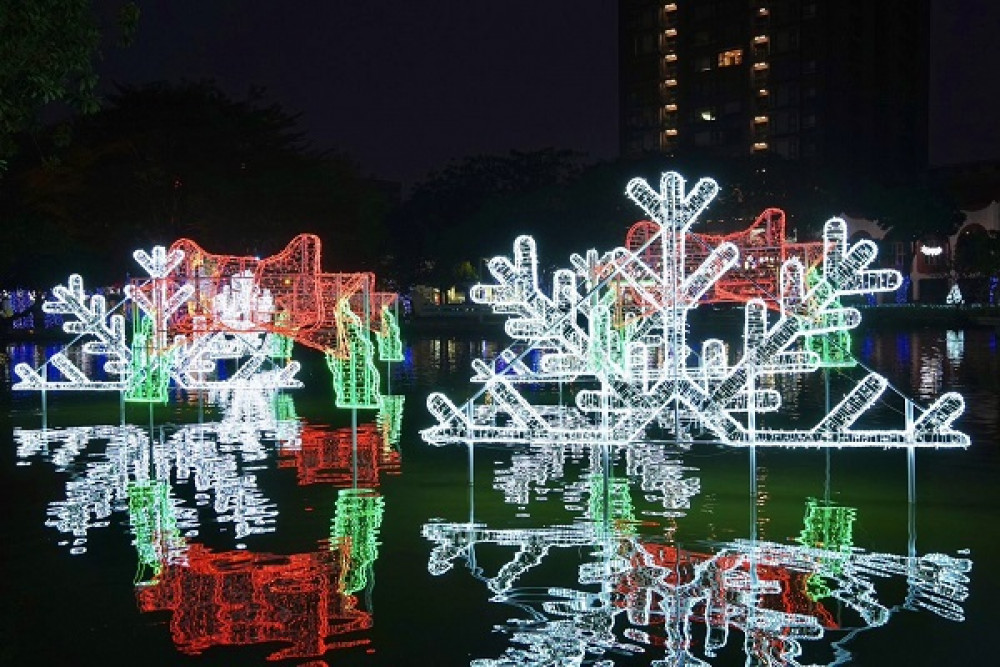 今年聖誕節以「冰世界.雪國度」為燈飾主題,設置15組燈飾,除高達12公尺高的旋轉音樂盒「璀璨冰山」外,還有冰雪奇緣的「雪戀國度」、滿滿幸福的「冬季獻禮」、10米高的「雪怪印記」、巴洛克風格宴會廳的「浪漫雪廳」等,皆是親子跟網美的打卡聖地,冰雪國度藍白色系光環境布置,絕對會讓大家感受充滿冰雪國度中,瑰麗的傳說與浪漫的雪國風情。