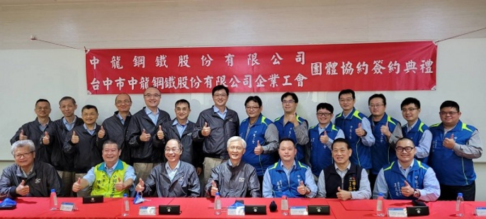 中龍鋼鐵股份有限公司與企業工會歷經多次協商溝通,7日(三)舉辦團體協約簽約儀式,台中市勞工局長張大春見證,勞資雙方共同簽訂完成,攜手開創嶄新和諧新關係。協約多項內容優於現行勞動法令,包含增設主婚假1日、提供員工子女結婚使用申請等多達7項條文,兼顧員工權益、公司營運發展的長久利益,打造友善幸福職場,充分展現中鋼集團企業踏實精神,共創勞資共好共榮。