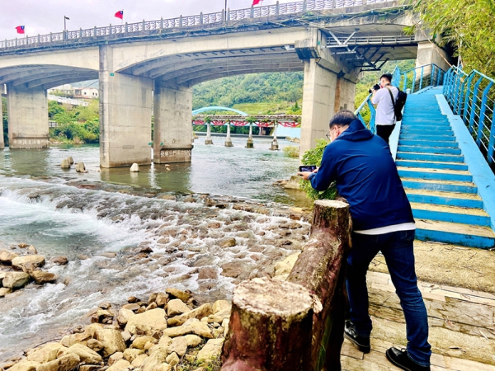 水利局長宋德仁表示,來訪的遊客可以從坪林吊橋踏上全長3.9公里的坪林觀魚步道,伴著北勢溪清澈的溪水一路步行至坪林舊橋,行經至台9縣跨橋段時,可以看見甫完工的坪林北勢溪固床工加高工程修復,將流經的河水形成跳躍奔騰而下的滾流。靠在舊橋扶手上眺望北勢溪上游,讓北勢溪的兩側彷彿無界延伸的相框,背景是護岸彩繪美化工程搭上既有的山景,還能一同收入湛藍色的坪林拱橋,絕對是走訪坪林必備的打卡地點。
