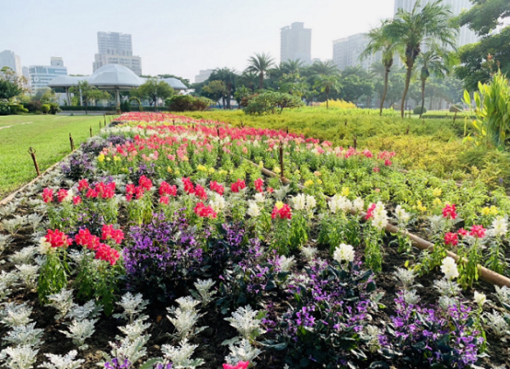 秋冬高雄氣候舒適陽光和煦,正適合種植時節草花,增添城市色彩,更能吸引外縣市朋友來高雄旅遊,在冷冽時節感受港都的熱情與美麗。今年的聖誕花卉Party以「錦繡如織」為主題,以多樣化特色新品種花卉布置,如相當特別的純白、珍珠粉的公主系列聖誕紅,不常見的斑葉粉紅聖誕紅,再搭配紅咚咚的新品種鼠圓寶聖誕紅,相當喜氣又熱鬧。