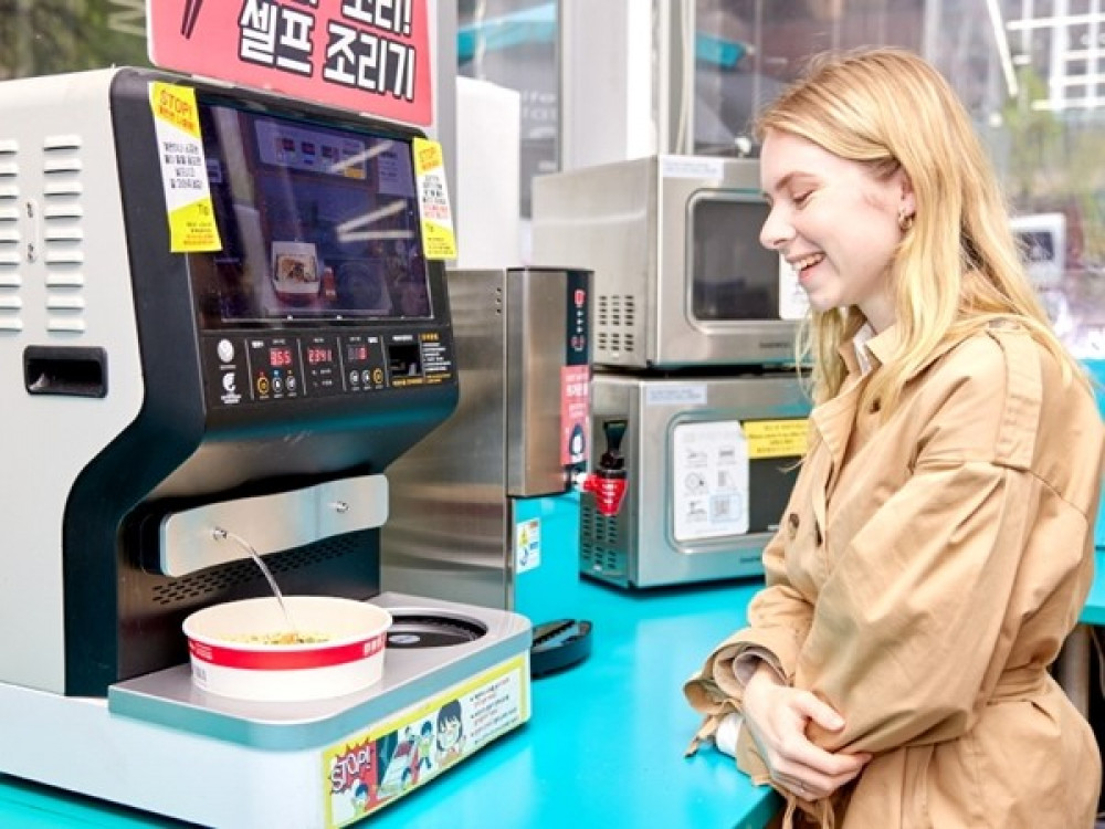 直接用熱水沖泡桶裝泡麵雖然也不錯,但最推薦買單包泡麵,用自助泡麵機感受在便利商店現煮泡麵的樂趣與美味。自助泡麵機的使用方式非常簡單,購買專用泡麵碗與單包泡麵後,將泡麵碗放在自助泡麵機的凹槽裡,把調味粉包與麵體一起放入碗內,按下按鈕等幾分鐘就大功告成了。而泡麵的絕配,就是能填飽肚子的三角飯糰,海苔、飯加上泡麵熱辣的湯頭,讓美味更加升級。眾多泡麵中,最熱門的特色商品就是Omori辛奇鍋泡麵與共和春炸醬泡麵,自上市以來就抓住韓國人的味蕾,爆紅後至今仍人氣不減,推薦大家可以品嚐看看。