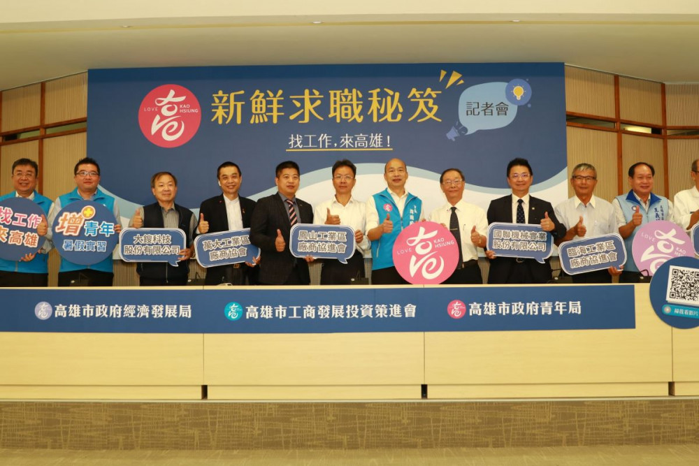 高雄市政府力挺社會新鮮人順利求職,由工商發展投資策進會、經發局與青年局攜手合作拍攝「新鮮求職祕笈」系列影片,請資深人資顧問、企業代表主講10堂課程,從履歷撰寫、面試技巧到職場適應逐一解惑。市長韓國瑜出席記者會表示,身為市府團隊,願意聯合產業、學術及企業界,齊心協力協助年輕朋友打拼求職、指導創業,盼打造燦爛、平坦的求職道路,增加成功的機會與籌碼。