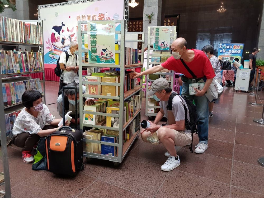 臺北市環保局10至11日(一-二)上午10點到下午4點,在市政府1樓中庭舉辦「體驗暑假『閱』讀趣,延慧書庫『樂』翻天」暑期加碼換書活動,民眾只要攜帶學生證等文件,即可挑選30本舊書帶回家,或者也能用15顆以上廢電池挑選現場3本舊書,相較平時兌換數量增加3倍,吸引許多民眾前往尋寶,現場熱鬧非凡。
