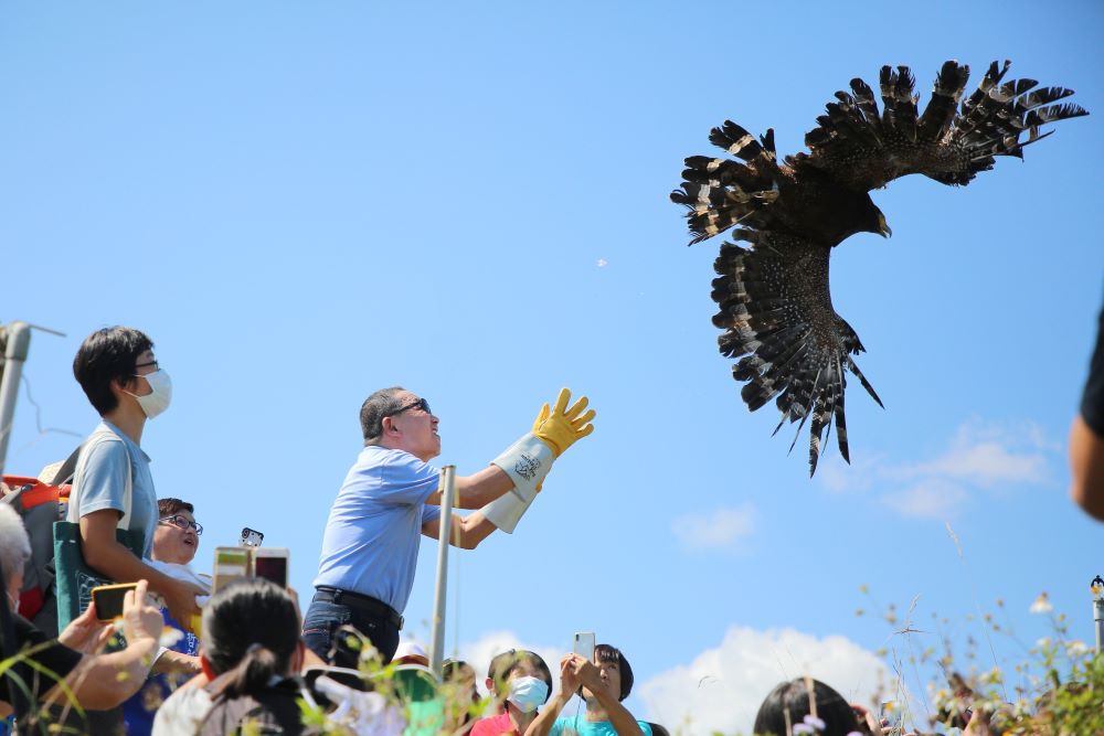 響應世界動物日,新北市市長侯友宜4日(日)在石碇區小格頭野鳥中途之家,野放2隻大冠鷲,送牠們回到原有的生活環境,在天空自由的翱翔。