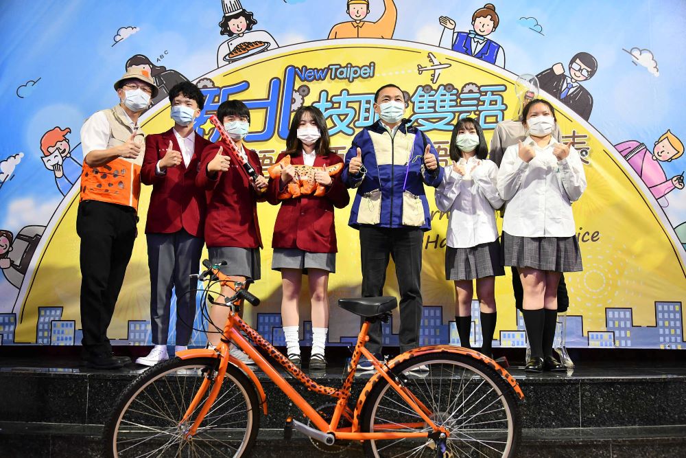 新北市長侯友宜16日(五)出席「新北技職雙語—雙語教師暨英語專題發表」記者會,聆聽學生以英語進行專題發表,並宣布首創開設「技高雙語學分班」,及結合44校成立的「技職大聯盟」,期望培養新北學子專業技能及外語表達的雙核心能力,讓他們鏈接世界、接軌國際。