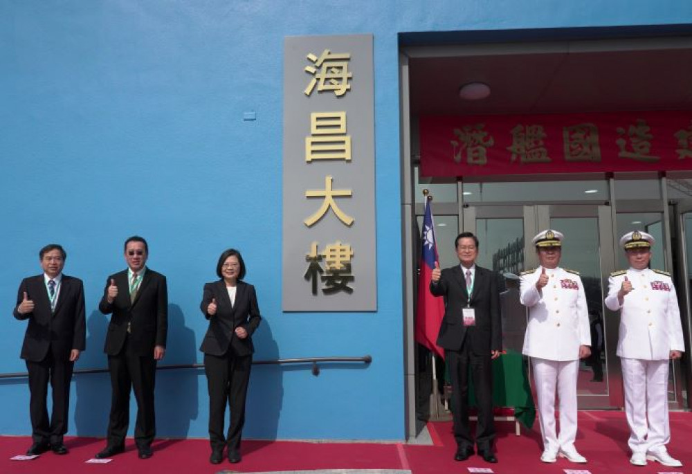 台船24日(二)上午在高雄廠主舉行「潛艦國造建造案開工典禮」,由總統蔡英文、台船公司董事長鄭文隆、國安會秘書長顧立雄、副秘書長陳文政、國防部長嚴德發、參謀總長黃曙光、海軍司令劉志斌等人見證歷史性一刻。