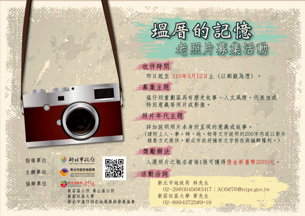 「塭厝的記憶」塭仔圳老照片募集活動,希望大家踴躍提供塭仔圳地區有關歷史人文風情景觀相關之照片,活動成果將提供文宣或展覽等製作使用,與各位共同見證塭仔圳的大改變。每張入選照片可獲得獎金新臺幣2000元,大家快用照片及文字記錄你與塭仔圳的故事。論 報 https://www.talk6s.com