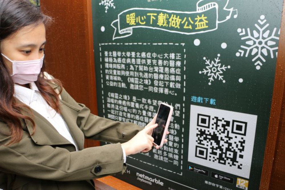 臺北醫學大學與網石棒辣椒公司合作,即日起到明年1月3日掃瞄QR碼下載手機遊戲《精靈之境》,該公司將下載轉換為愛心,捐款北醫臺北癌症中心,幫助弱勢病童戰勝惡性腫瘤的威脅。