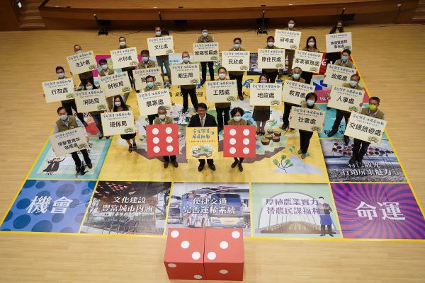 潘孟安指出,今年會以大富翁的形式舉辦就職週年記者會,主要是受到嚴重特殊傳染性肺炎疫情影響,但屏東建設的腳步不能停,在黎明的曙光升起前,除持續配合中央相關防疫措施外,面對各項挑戰,仍需跳脫傳統思維,尋找各種縣政難題的突破口,替縣民爭取最大的福利。