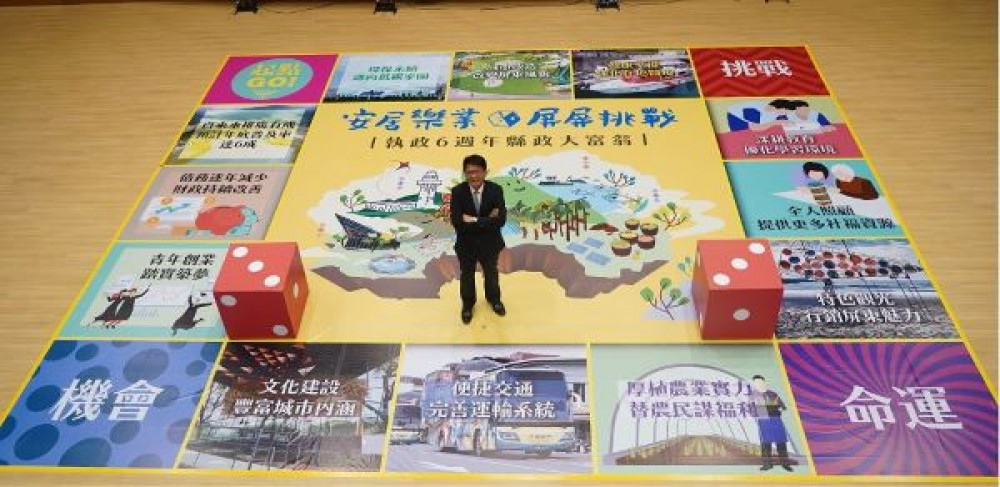 活動關卡包含文化建設、厚植農業實力、深耕教育、環保低碳家園等,潘孟安在有限的時間內詳細介紹,其中「機會、命運、挑戰」三關,分別邀請縣內青年、幼兒、長者擔任關主,他提出相關青年政策、幼兒福利、老人照護等縣政回應,縣政用心程度令人印象深刻。