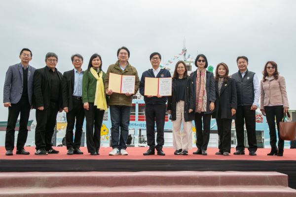 陳其邁與林右昌一起體驗獨木舟、愛之船及高港小火車等設施,一路上開心與民眾互動、合照,還在大港橋景觀平台上模仿電影橋段供媒體取景,展現好交情。隨後兩人簽署合作備忘錄,宣布「雙港漫遊趣」正式啟航。