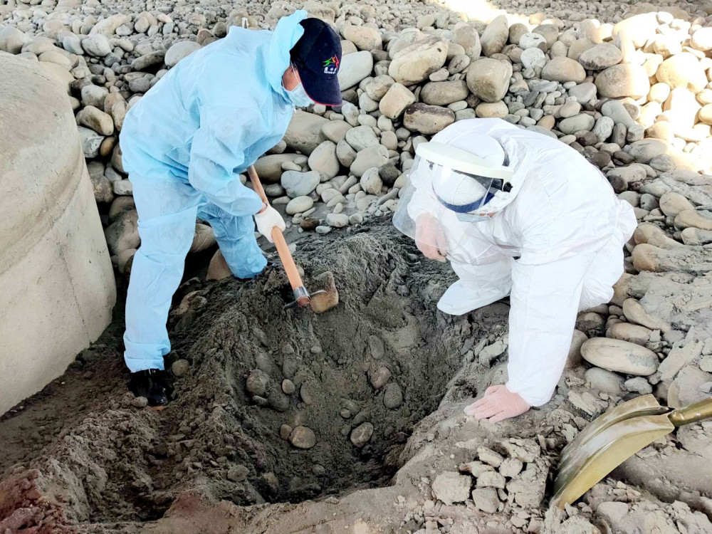 巡邏人員全程穿著防疫裝具及拉設封鎖線管制,同時聯繫台中市動物保護防疫處及行政院農委會動植物防疫檢疫局台中分局台中港檢疫站。