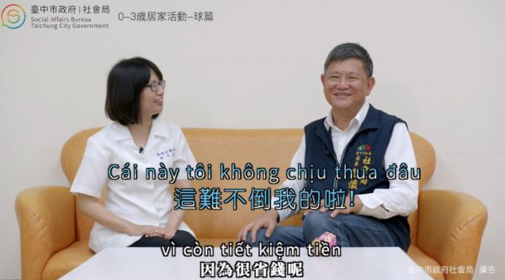 台中市社會局拍攝5支居家活動影片,分享如何利用保特瓶、紙箱等簡單素材,透過親子遊戲互動,幫助孩子發展成長,培養親子關係,影片製作中文和越語兩種版本,讓更多新住民家庭共享兒童發展資源。