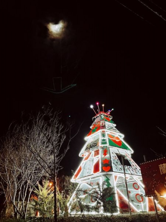 「塔山光之樹」去年平安夜點燈,展至3月31為止,作品第二層可供預約制登高觀樹,民眾可電洽0988-196-686預約。
