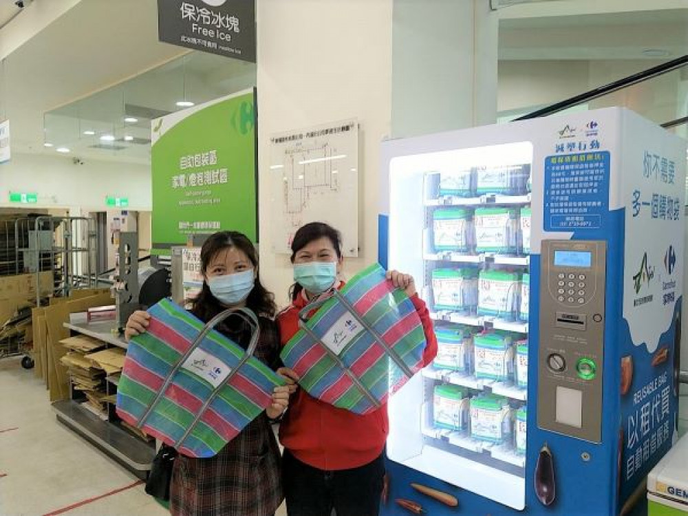 環保局表示,多數塑膠袋用過即丟,且塑膠材質在環境中無法短時間自然分解,造成生態環境問題日趨嚴重,民眾購物自備環保袋,才是真正落實塑膠袋減量的根本之道。繼107年先後與士東市場及南門市場合作,在市場內設置「環保袋自動租借機」,今年與家樂福合作,在內湖店及天母店設置「環保袋自動租借機」,民眾可支付50元押金取得環保袋,購物後在賣場內服務台或到環保局退還並取回押金,也可留下當環保袋,供日後購物時循環使用,藉由改變民眾消費行為,循環使用環保袋,減少塑膠袋使用量。