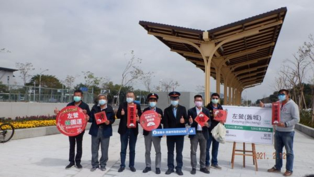 林副市長12日(五)上午在水利局蔡局長陪同下,到左營舊城站旁,齊向民眾拜年。他表示,園道工程在工務局與水利局施工團隊努力下,如期如質達成在農曆年前開放76.5%總面積的任務。