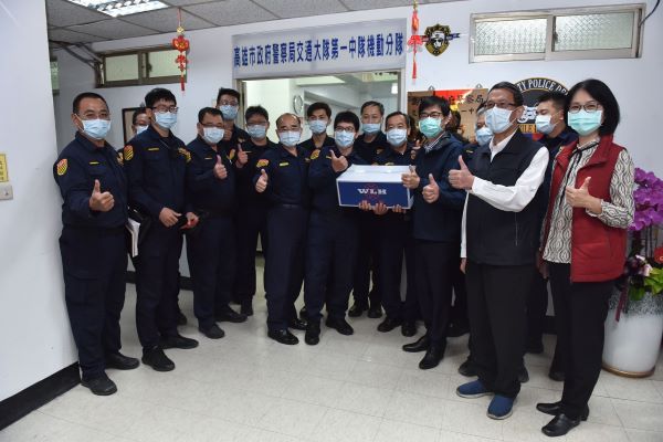 隨後,陳其邁前往交大機動分隊,致贈小紅包及水果慰勉值班警員,感謝春節連假期間,交大與相關單位共同合作疏導交通,減緩大量人車潮在高雄壅塞,肯定值勤人員過年留守值班,持續為民服務。
