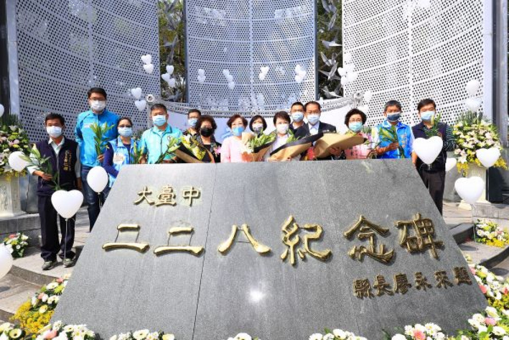 今年是二二八事件74週年,台中市政府28日(日)在大里區國光公園二二八紀念碑前,舉辦110年度二二八和平紀念追思會,市長盧秀燕帶領民眾默哀沉思,向當年不幸受難的人民表達追思之情。盧秀燕表示,藉由追思紀念活動,期盼用愛化解歷史傷痕,包容不同聲音,透過理解轉化悲情,讓台灣未來更好。