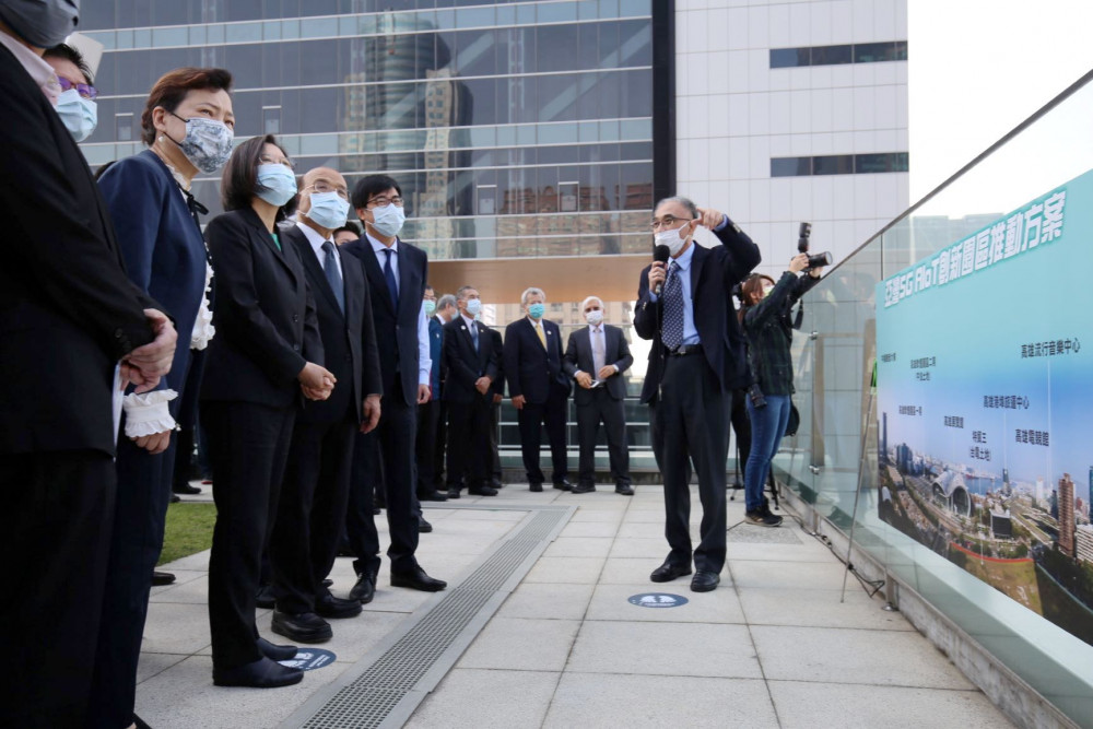 總統蔡英文日前視察高雄「亞洲新灣區5G AIoT創新園區」,在高雄市市總圖7樓際會廳,聽取經濟部及高雄市政府的整體方案推動計畫,行政院宣布5年110億,結合高雄市政府、經濟部、交通部、國發會、通傳會及文化部等跨部會能量,投入園區開發、人才中心、新創基地、5G AIoT智慧設施,是國內投資額最大、最完整的5G AIoT實證場域,預期5年內將引進50家國內外廠商及120家新創公司進駐,促進投資300億元,提升高雄相關產業產值達1,200億元,隨後往頂樓露天劇場鳥瞰高雄港,現場有100多家廠商與會。視察後,經濟部王美花部長隨即召開產業座談會聽取業界意見。