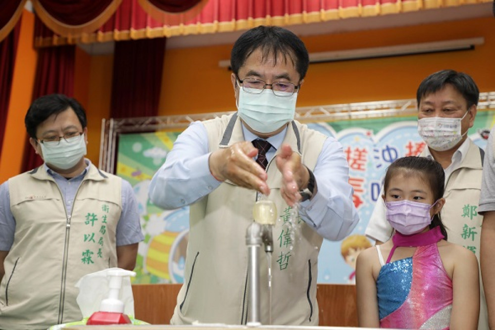 為加強宣導正確校園腸病毒防疫觀念,台南市衛生局、教育局5日(三)世界手部衛生日,到善化區大成國民小學舉辦「濕搓沖捧擦、腸病毒嘸免驚!110年台南市腸病毒防治宣導活動」,市長黃偉哲現場衛教學童洗手流程,帶領全校師生宣誓「勤洗手Every Day、腸病毒Go Away」,一同以行動宣導勤洗手、遠離腸病毒觀念。