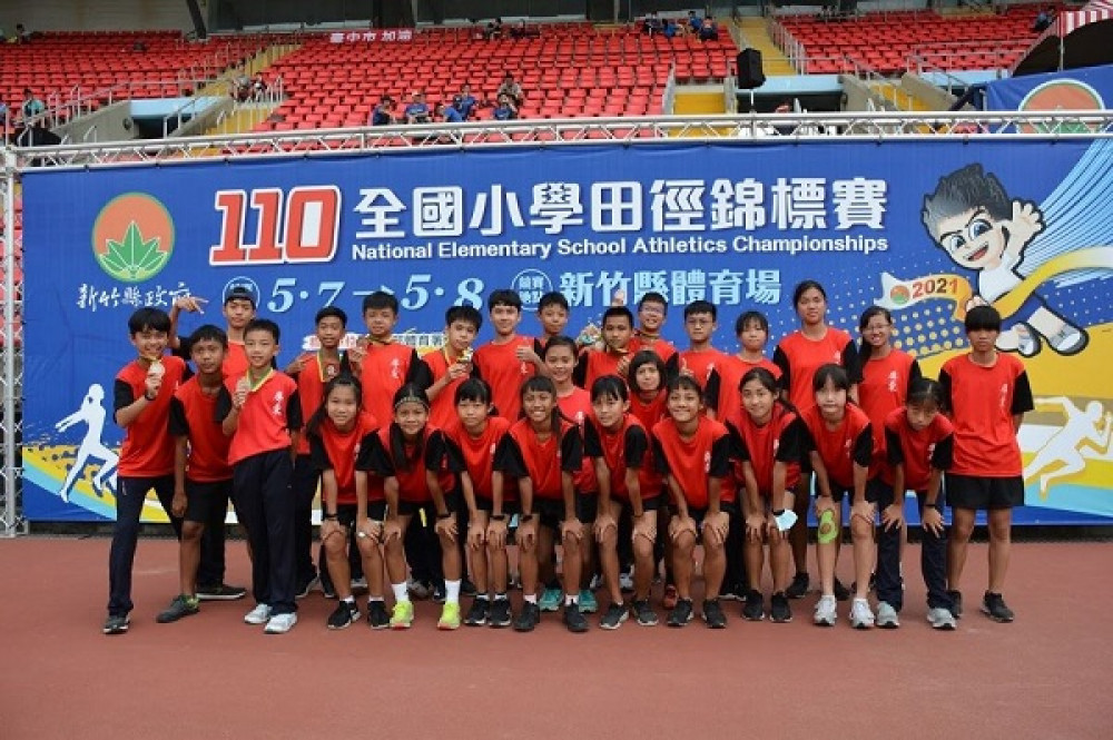 110年全國小學田徑錦標賽日前在新竹縣立體育場落幕,屏東縣代表隊獲歷年參賽最佳成績,團體男童4×100公尺接力金牌、4×200公尺接力銀牌、12×100公尺大隊接力銅牌;個人男童200公尺銀牌、跳高第7名;團體女童12×100公尺大隊接力第8名。其中,男童4×100公尺接力更獲首面接力金牌,遠從家鄉前來現場觀賽的老師、家長無不歡聲雷動。