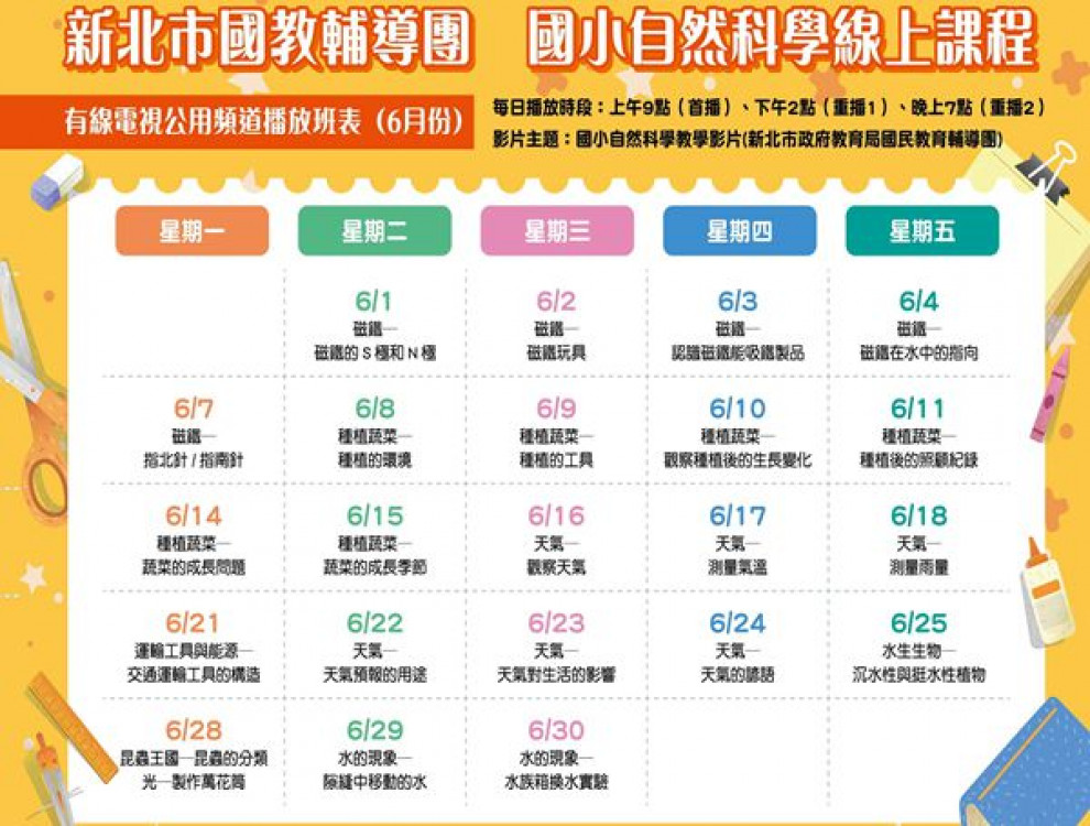 全國各級學校停課延至6月14日,新北市府從109年4月1日起,就攜手新北市13家有線電視系統台業者於CH3公用頻道推出「停課不停學」、「防疫動健康」等線上教學影片,種類包括國小自然科學及數學科等課程影片,讓民眾打開電視就能學習。