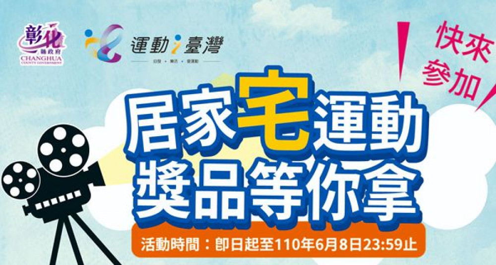 全國疫情警戒升級至三級,6月14日前人人防疫宅在家,防疫不忘提升抵抗力,宅在家也要動滋動滋動一動!彰化縣政府推出「居家宅運動、獎品等你拿 ~」活動,快來拍下在家運動時活力滿滿的模樣,運動種類不限,自即日起至110年6月8日晚間23時59分前分享個人或親子運動精彩片段30秒影片,並上傳教育處臉書專頁(https://www.facebook.com/boe.chc.edu/),就有機會抽得大獎。