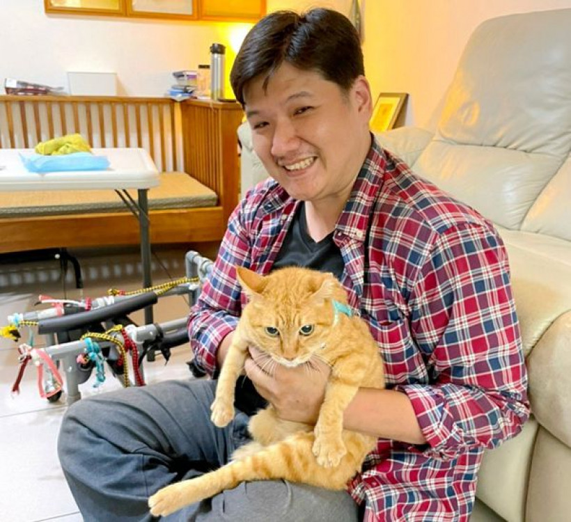 原本平靜生活在新店僑信路90巷的一隻街貓,在去年12月歷經一場車禍改變了牠的一生,一早被郭仁澤發現時,小黃貓已躺臥在僑信路上,郭仁澤表示,當天里民傳來僑信路上發生嚴重車禍,前去查看赫然發現是一隻流浪貓,趕緊將小黃貓送至新店動物之家醫療。駐區獸醫莊子昇立刻進行檢傷,除有嚴重脫水及失血外,發現後半身無法站立、右後腳開放性骨折等情形,經緊急輸液及止血醫療,小黃身體狀況才轉為穩定,後送至毛寶貝醫療中心繼續醫治。獸醫師檢查發現,小黃骨盤嚴重變形,右後肢開放性骨折,經過數次手術,小黃總算保住生命,但也從此後癱及失去一隻腳。